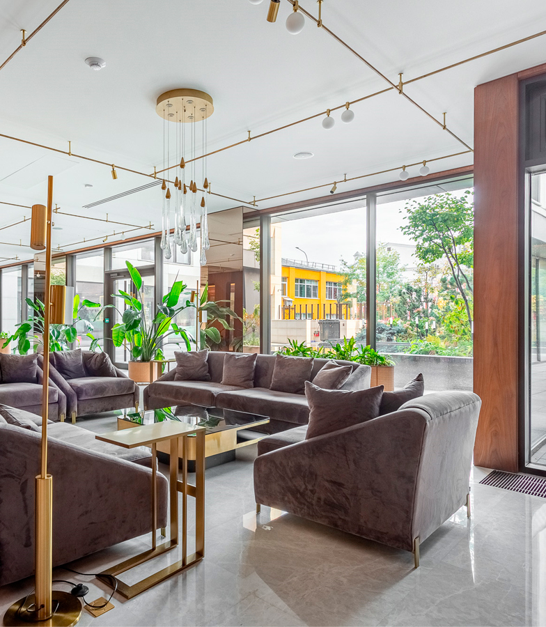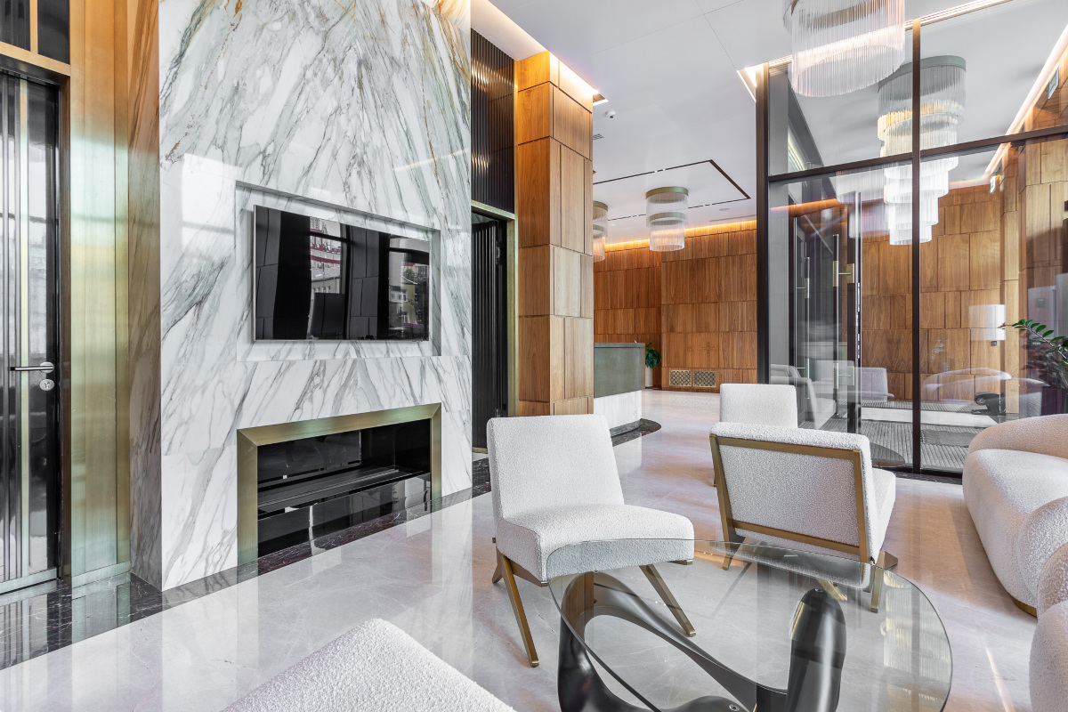 Инфраструктура комплекса обеспечивает комфорт и безопасность: гостей встречает круглосуточный консьерж в стильном лобби с бесшумными лифтами. На внутренней территории для жителей обустроен приватный сад с фонтаном для прогулок в самом центре города. Подземную часть комплекса занимает паркинг.